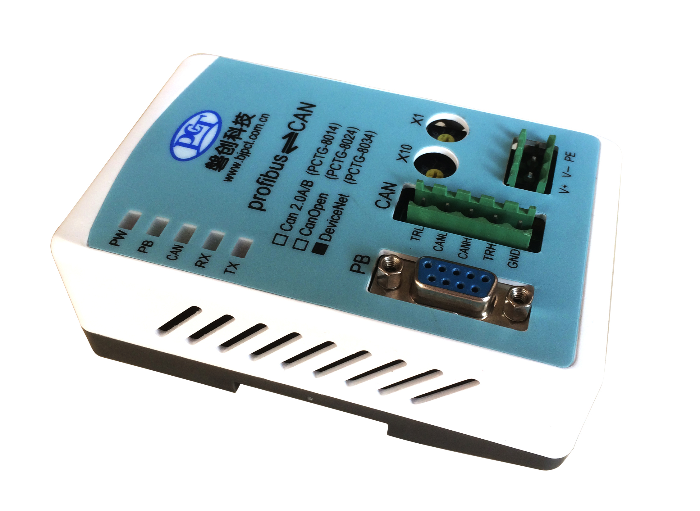 DeviceNet是一种基于CANbus的通讯协议。针对DeviceNet协议,我公司推出了型号为PCTG-8034的DeviceNet转ProfibusDP从站协议转换网关。此款网关在ProfibusDP总线上做从站,在DeviceNet总线上做主站或从站均可,使用DeviceNet协议的设备可通过本网关和ProfibusDP总线上的主站设备(如:西门子S7-300/400,ABB-800)进行数据交换。
