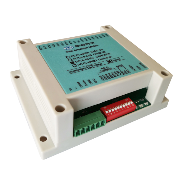 模块为8通道电压、电流模拟输出模块,主机或PLC可通过CAN总线CANopen协议给模块发送指令,模块根据指令输出模拟电压或电流信号。